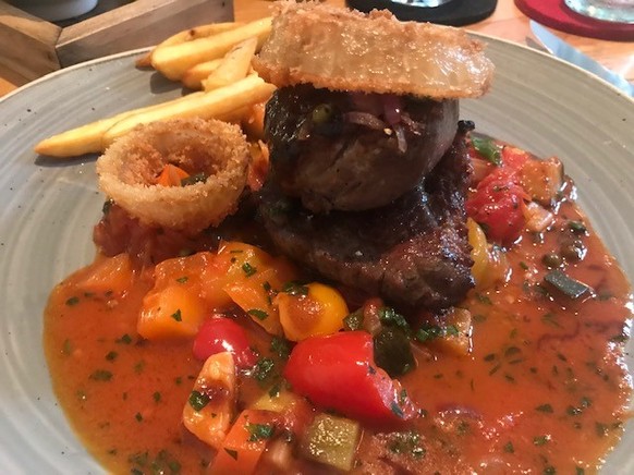 French Onion Burger with French Oven Gravy Fries Rachael Ray.